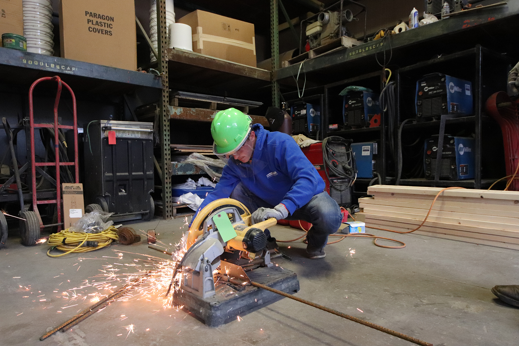 Mediapolis Senior Clayton Vorwerk cuts rebar in the concrete forming module Thursday during the Third Annual High School Construction Skills Challenge at Carl A. Nelson & Company in Burlington, Iowa. Five area high schools took part in the event, with Fort Madison coming out the winner. Mediapolis took the second-place prize.