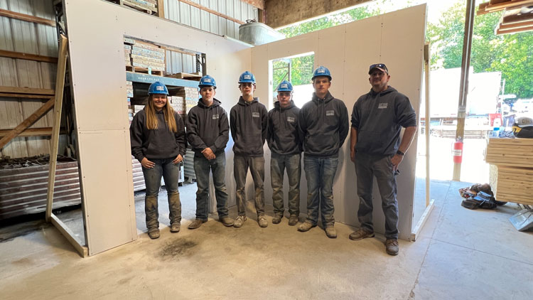 Construction trades students from five SE Iowa high schools were given the task to frame and drywall adjoining metal stud walls with window, door openings.
