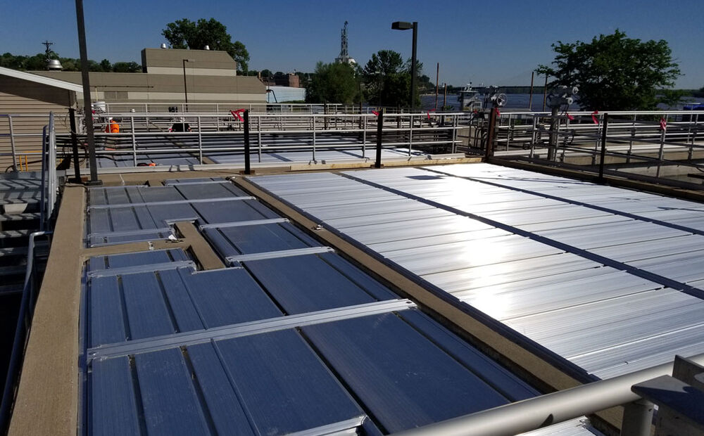 The $481,000 project included installation of FRP and aluminum covers over the plant's primary clarifier and wet well, as well as installation of five odor treatment units and related FRP ductwork.