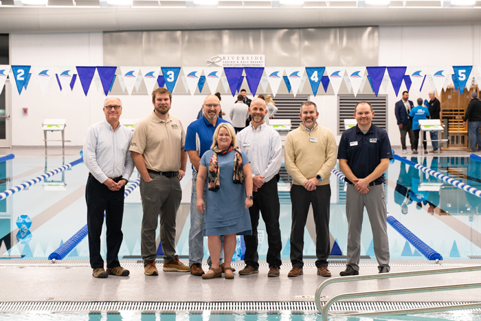 Carl A. Nelson & Company provided design-build services to the YMCA of Washington County on its 20-years-in-the-making new fitness/community center and aquatics center. Members of the CANCO team (shown with YMCA of Washington County CEO Amy Schulte) attended the Dec. 10, 2024, ribbon-cutting event to celebrate completion of the aquatic center. CANO Project Manager Tad Morrow expressed the company's gratitude for the opportunity and giving thanks to the contractors and suppliers present who took part in the work. Whisler Studios photos, used with permission