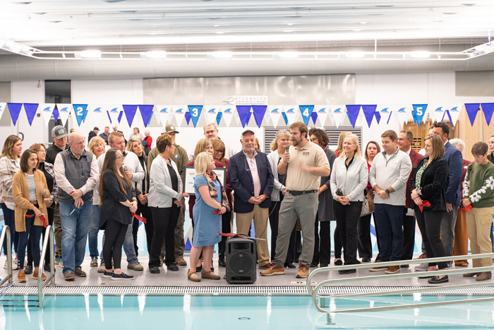 Following a lengthy planning, fundraising and design effort, construction of Phase 1, the new fitness and community center, began in 2018. After opening in 2020 to much enthusiasm, attention quickly turned to planning and raising money to build Phase II, the 15,000 SF, $8 million aquatics center. Ground was broken in July 2023, with only installation of bleachers and some landscaping in the spring yet to be completed at the time of the ribbon-cutting.