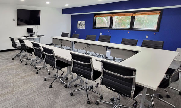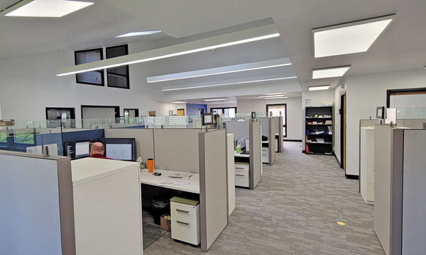 Located in a building originally designed and constructed as a commercial color lab for a local photography company, the new North office facility offers space on three levels, and required only a small investment to be made move-in ready. Compared to the previous location, the new office is a significant change, with an open floor plan rather than private offices; and a large conference/training room, among other more user-friendly spaces.