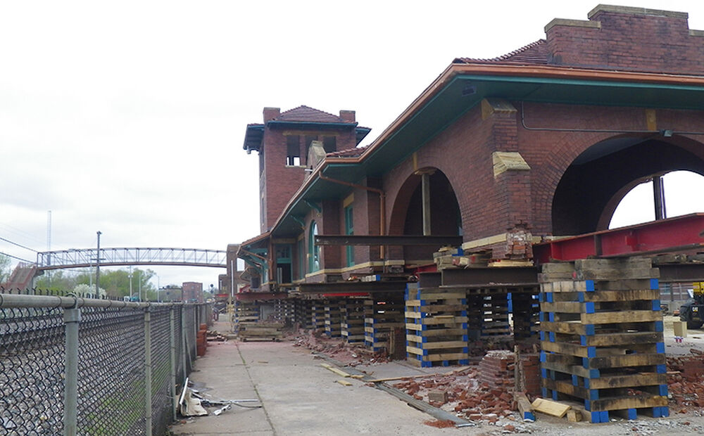 The City of Fort Madison, in collaboration with BNSF, implemented a program to restore the old Santa Fe station built in 1910 for a new Amtrak waiting room and ticket office. The remainder of the building would continue to be used by the North Lee County Historical Society for museum exhibition and storage space. Due to recent flooding, the city decided to raise the historic brick building approximately four feet to an elevation above the 500 year flood level.