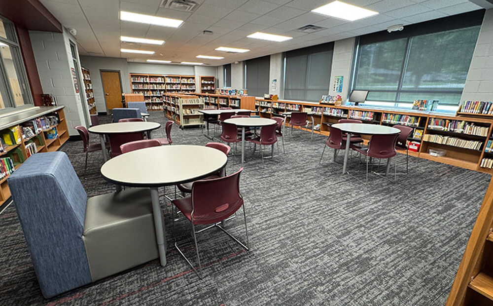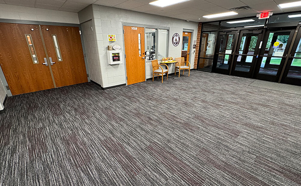Work at the secondary building began in 2023 and included a 3,700 SF secure entry and administration addition; west wing HVAC replacement, restroom and life skills classroom renovations, new siding, new windows and roof replacement completed in two phases, west then east; and media center and guidance renovations. At the elementary building, renovation work in the summer of 2024 included renovation and conversion of an underused locker room space and restroom renovations; and renovations to create a secure building entry and to renovation special needs spaces