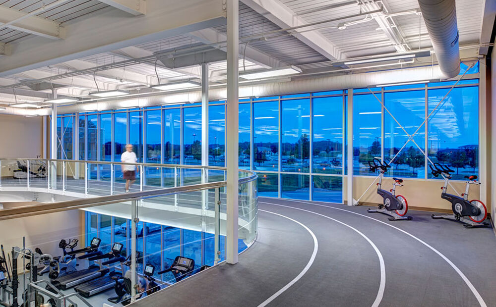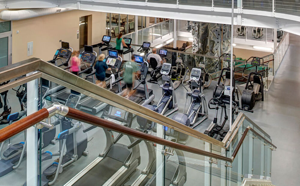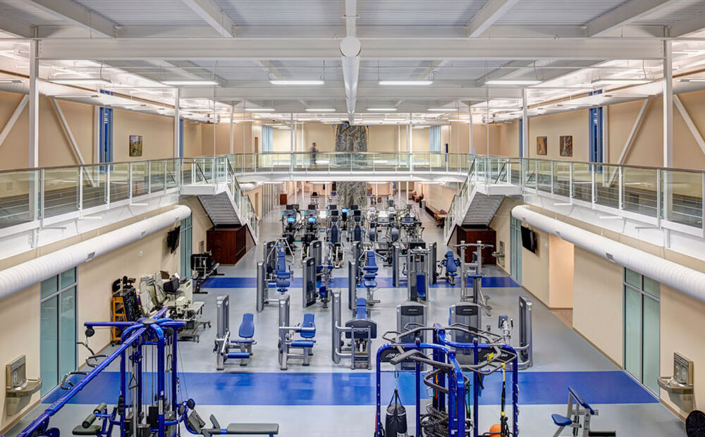 The 30,000 SF high performance sports and orthopedic rehab center includes a new outpatient clinic with two (2) X-ray rooms and space for future MRI equipment. This state of the art rehabilitation center includes an indoor walking track, fitness training area, rock climbing wall, high-end locker rooms, a wood sports training court and an artificial turf training field.