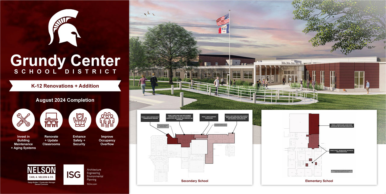 Renovations and an addition at the Grundy Center Community School District’s secondary and elementary schools are the result of a successful $12.99 million bond referendum in 2021 that will provide the bulk of the funding.