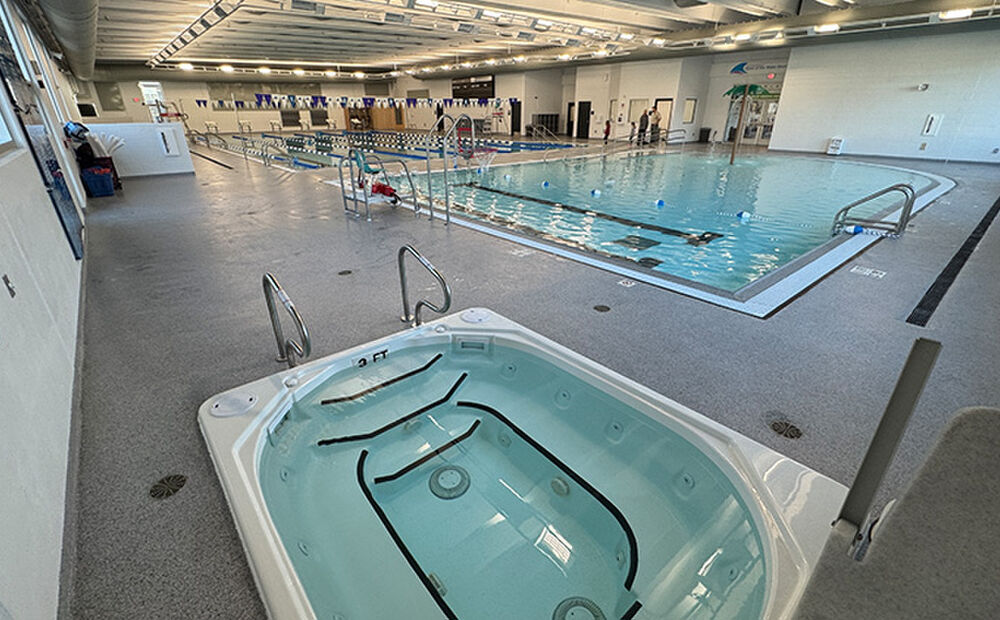 The 15,000 SF, $8 million aquatic center addition features a six-lane competition pool with a depth of 10 feet and lane length of 75-feet, 3/4 inches (making it suitable for hosting high school swim meets); a family recreation pool with zero-depth entry; an 11-person spa; and three saunas.