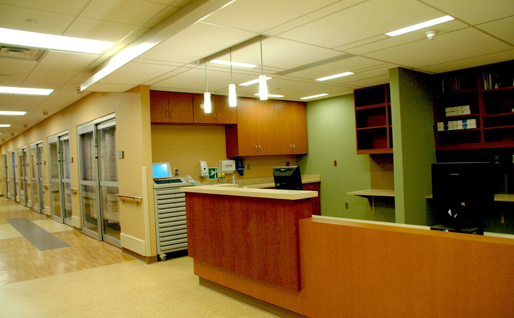 The replacement hospital includes a 25-bed med/surg, OR, endoscopy procedure room, PACU, emergency department, imaging department, pharmacy, lab, cafeteria, administrative offices, and six medical clinics. The hospital was designed based on the “Green Guide for Heath Care” principles. In fact, the online magazine, GreenBuildingNEWS, wrote an article about the project.
