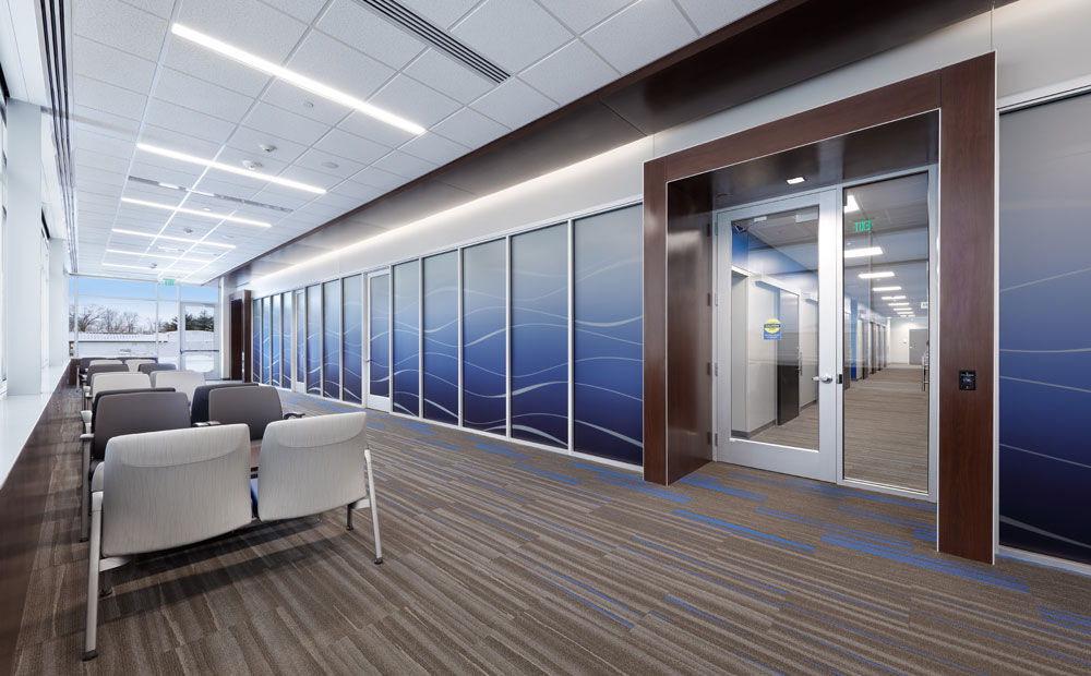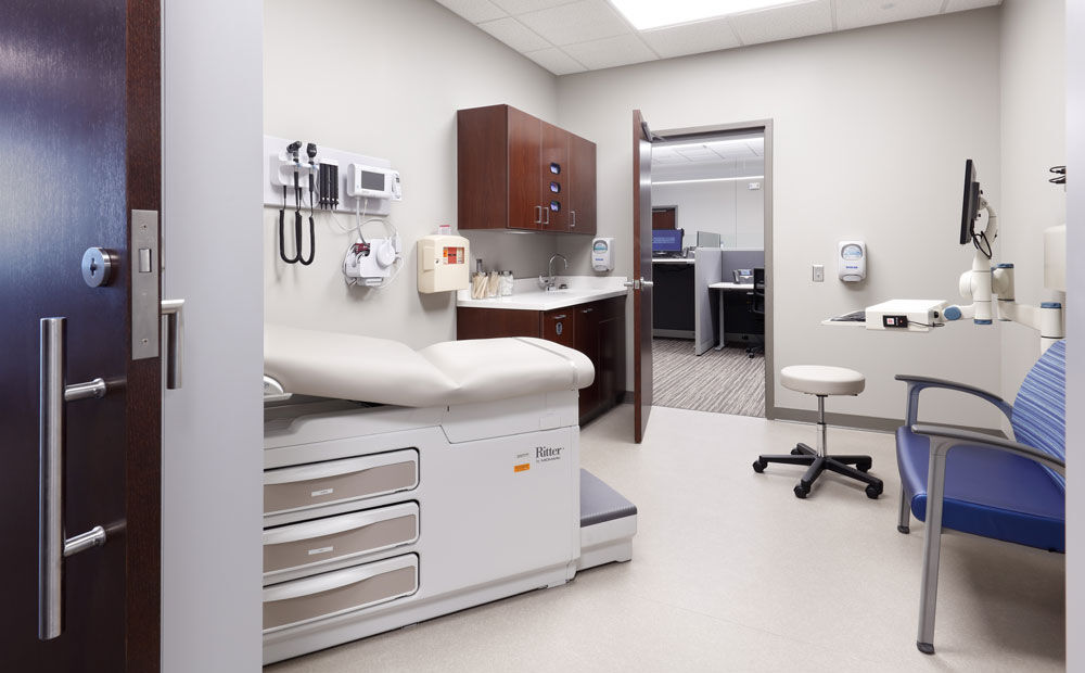 The new clinic facility includes spaces for radiology, eye exams and retail optometry, mammography, physical therapy, lab, 20 exam rooms, treatment rooms, lobby and reception.