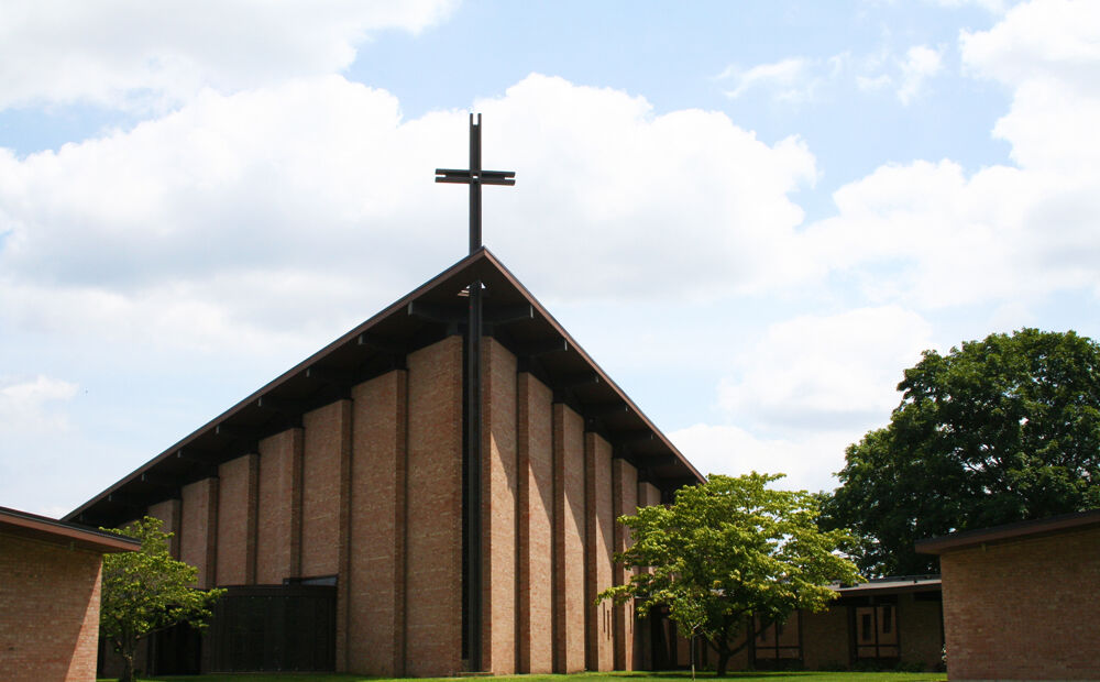 Flanking either side of the sanctuary, are two wings with curved walls for added architectural appeal. The east wing houses a kitchen and social hall while the west wing is comprised of Sunday school rooms and a pre-school area.