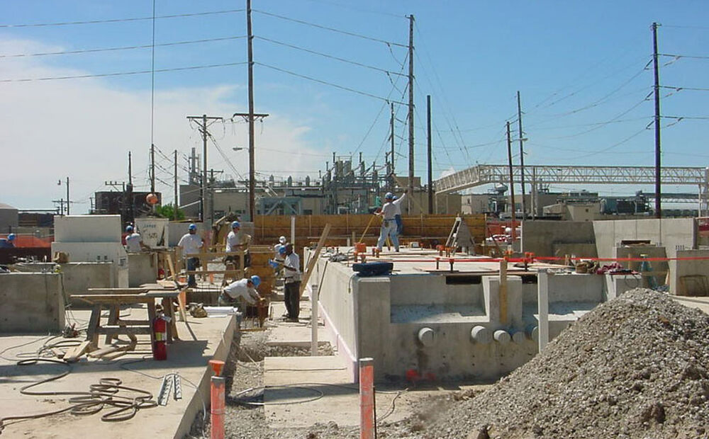 The 117 ft. x 65 ft. gas turbine building is designed with truss columns to achieve an eaves height of 50 ft. while supporting a 22 ton overhead bridge crane. The 83 ft. x 56 ft. steam turbine building has an eaves height of 34 ft. and includes an 11 ton bridge crane. In addition to the metal buildings and associated office build-outs, Carl A. Nelson & Company did the site work and foundations for all phases of construction. Two of the many unique foundations were the combustion turbine pedestal and the Heat Recovery Steam Generator (HRSG) foundation. Both required structural frame templates to hold the anchor bolts and setting plates to extremely precise tolerances. All pieces of equipment were set perfectly.