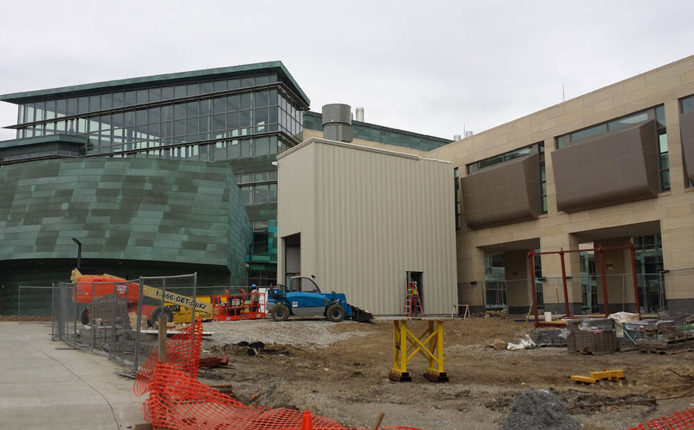 To get material and equipment into the space we extended an existing access shaft up to grade and covered with a temporary building. The temporary building was constructed with a hoist/monorail system to lower material/equipment down to the work space through an opening measuring only 8’ x 12’. Workers accessed the space through existing University buildings using stairs and/or elevators.