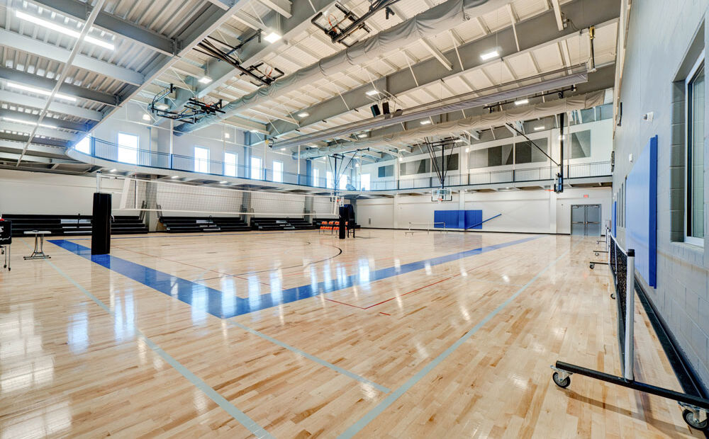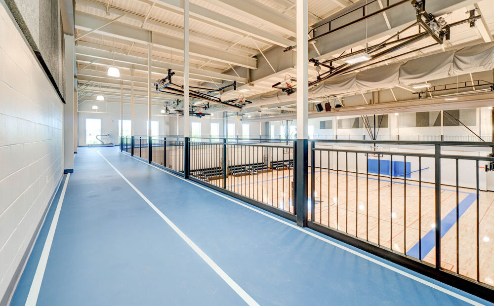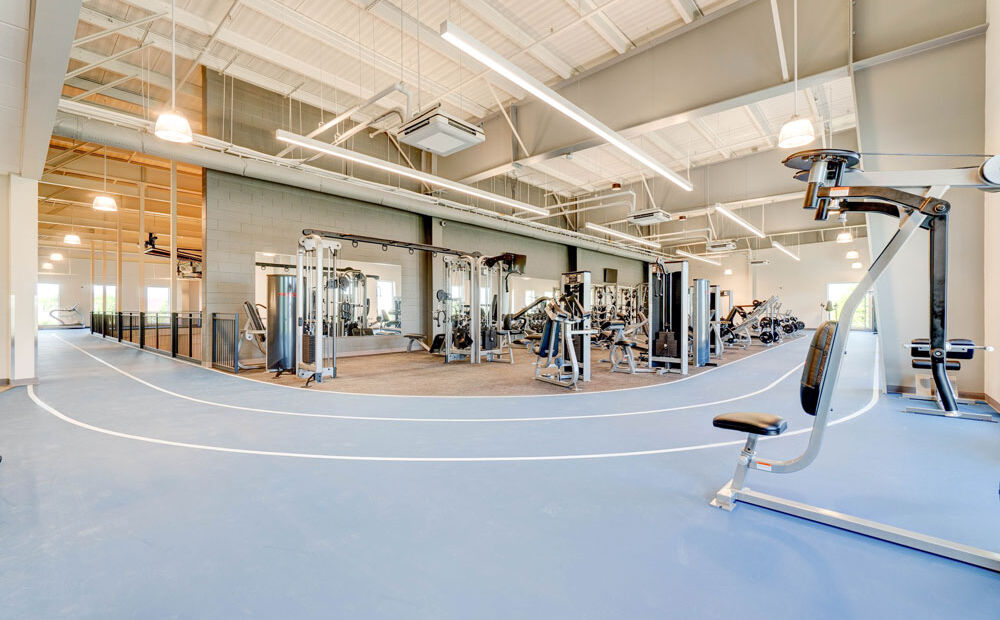 The two-story building features a full-size basketball court, second-story indoor track, extensive resistance and cardio training facilities and equipment, fitness classrooms, locker rooms, short-term childcare center for members using the facility, community gathering space, commercial kitchen and more. All in a wide open space that is drenched during the day in natural light.